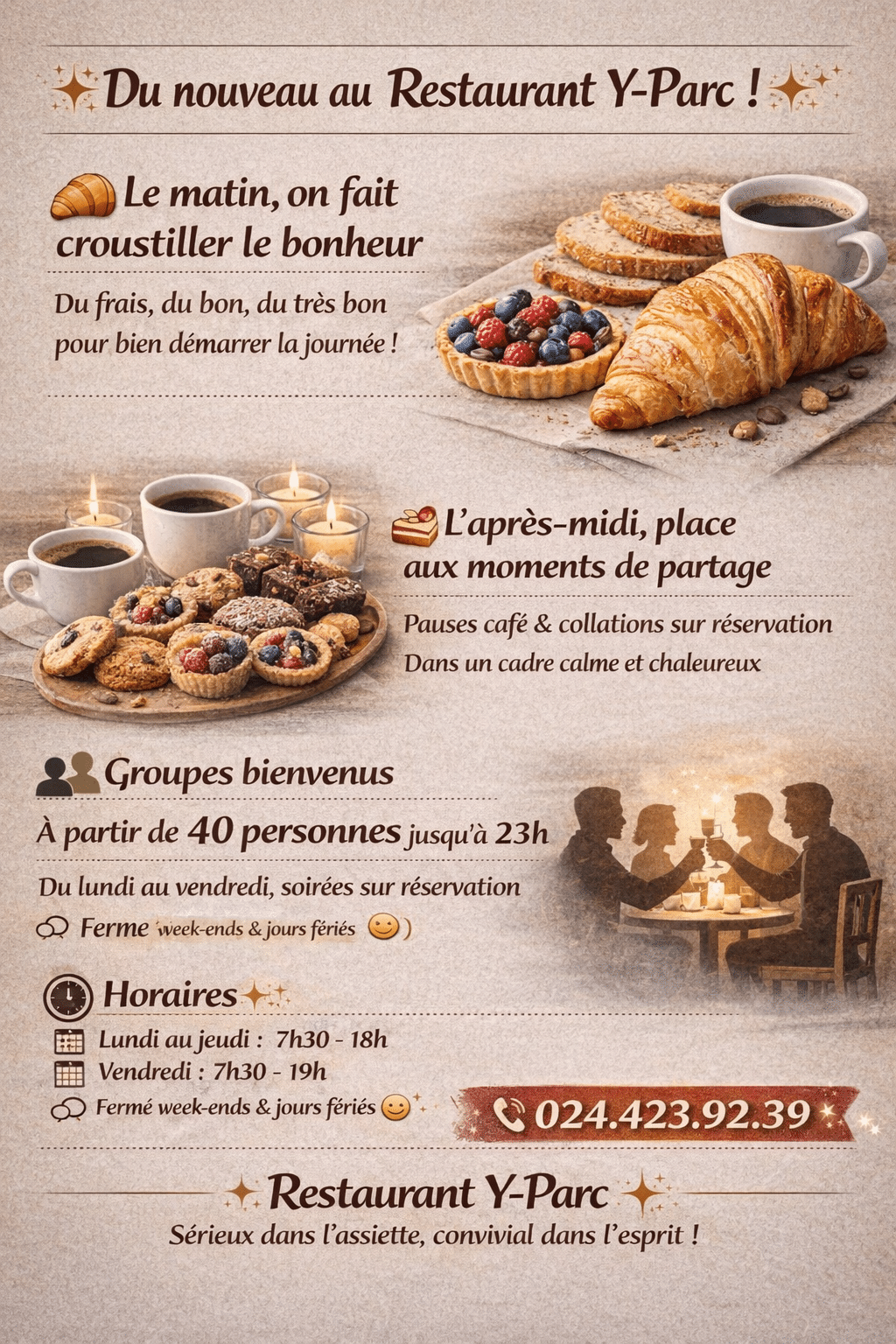 soignés, le restaurant Y-Parc vous offre la